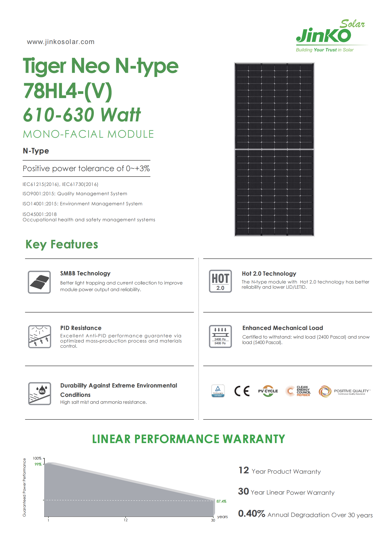 แผงโซล่าเซลล์ Jinko 630W (N-type)